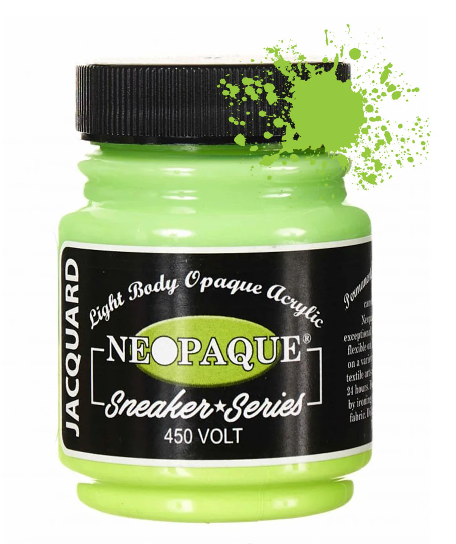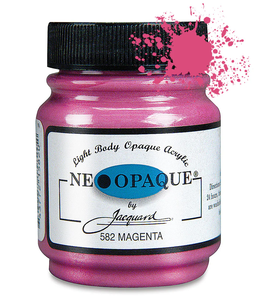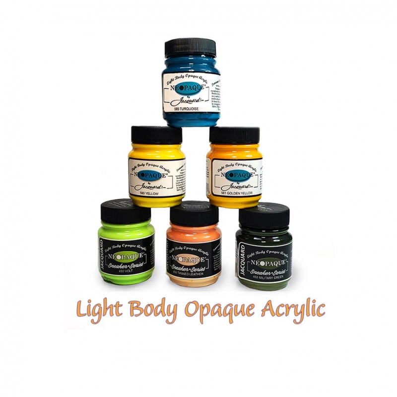Neopaque shares many characteristics with Lumiere but is formulated with traditional pigments instead of metallics. A great companion to Textile Color for black fabrics, these super opaque paints provide maximum coverage on virtually any dark ground. Exceptionally washfast on fabric, Neopaque is also permanent on a wide variety of other surfaces, including leather, vinyl, canvas, stone, plastic and rubber. Professional shoe painters depend on Neopaque for its superior durability and adhesion to non-traditional surfaces—it won’t crack, peel or chip, even with continuous wear. Great for fine arts, textiles, leather and more, Neopaque is unsurpassed for coverage, versatility and performance.
